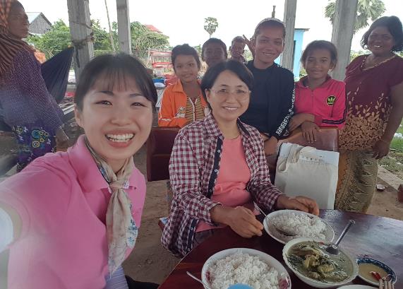 - 스둑마을 어린이 사역하는 집에서 점심을 대접받았습니다. 강 복음 선교사는 현지 음식을 어려워하지 않고 잘 먹고 시골 생활에 적응을 잘합니다